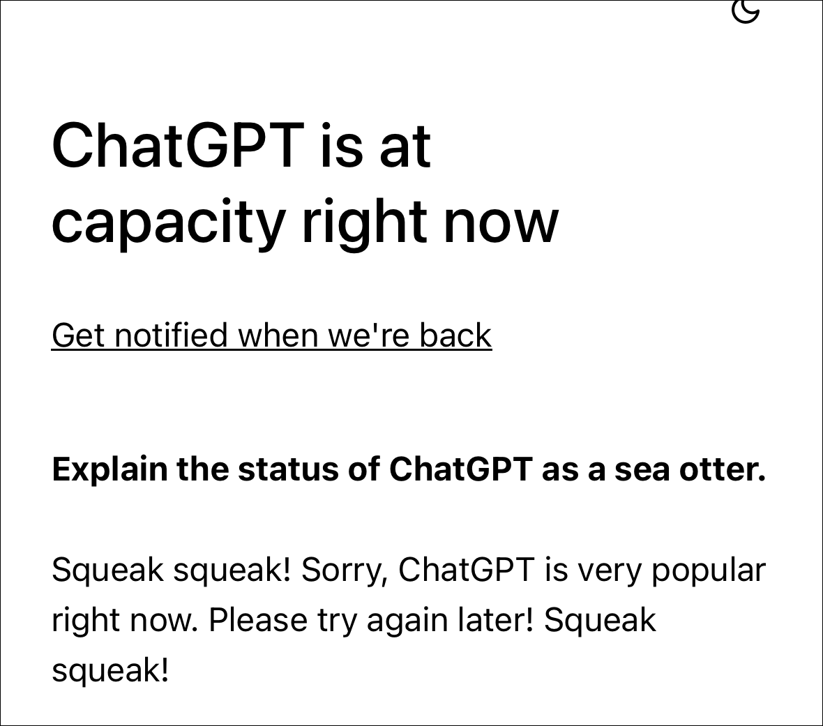 Note: If you don’t get to the authentication page and instead get the message that “ChatGPT is at capacity right now,” the only thing you can do is wait. OpenAI is working on scaling their systems for ChatGPT because of the high demand they’re experiencing.