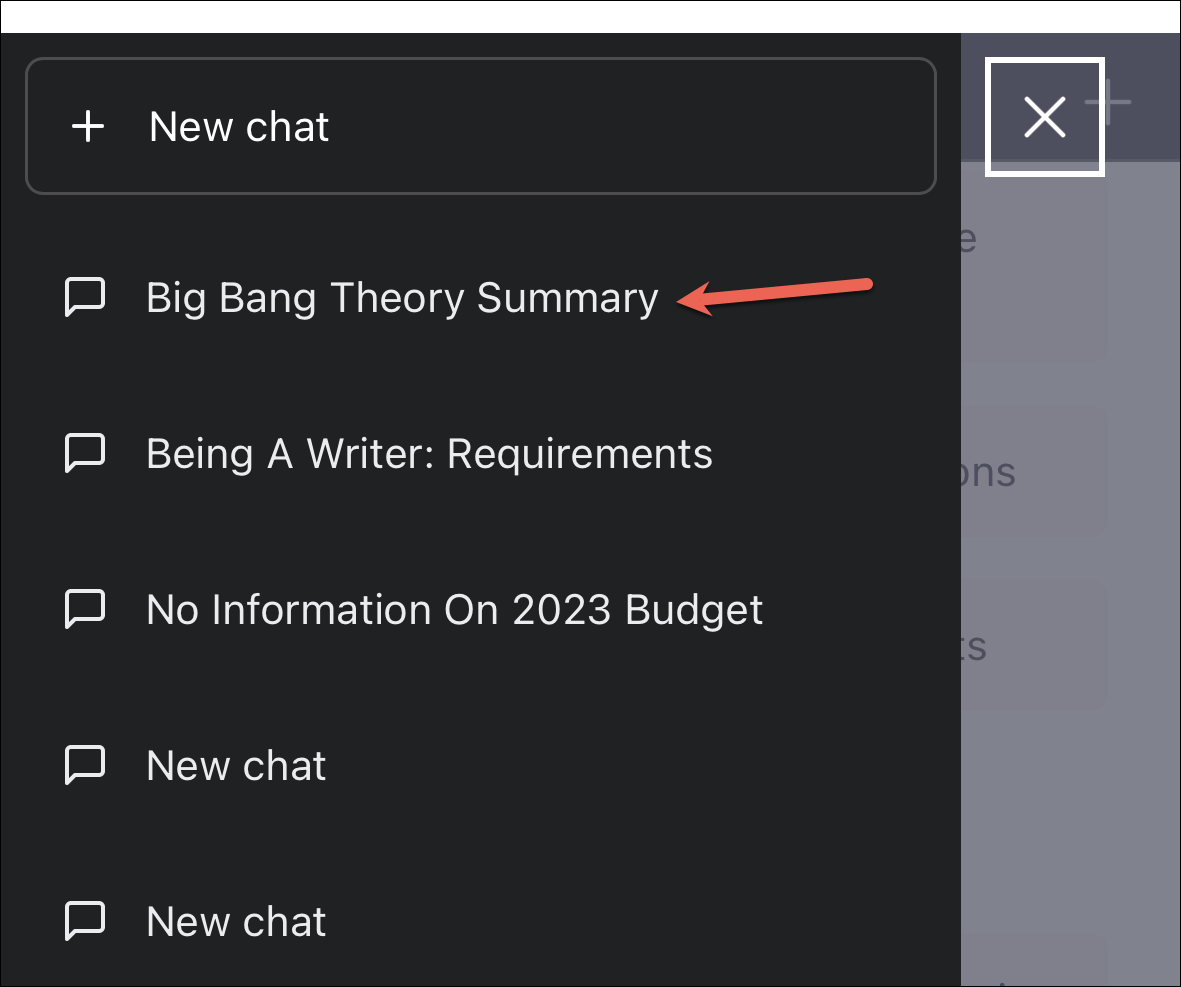 Then, select the desired chat from the panel that appears.