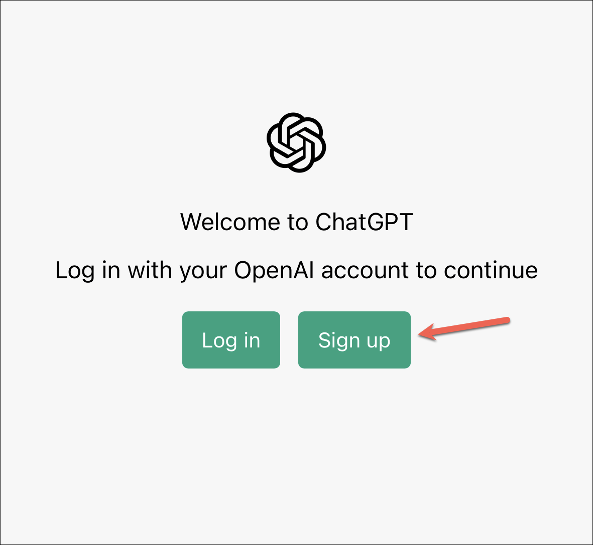 Then, tap the ‘Sign up’ option, assuming it’s your first time using ChatPT. If you’re a ChatGPT user on the desktop, tap the ‘Log in’ option instead and enter your credentials to log in to your account.