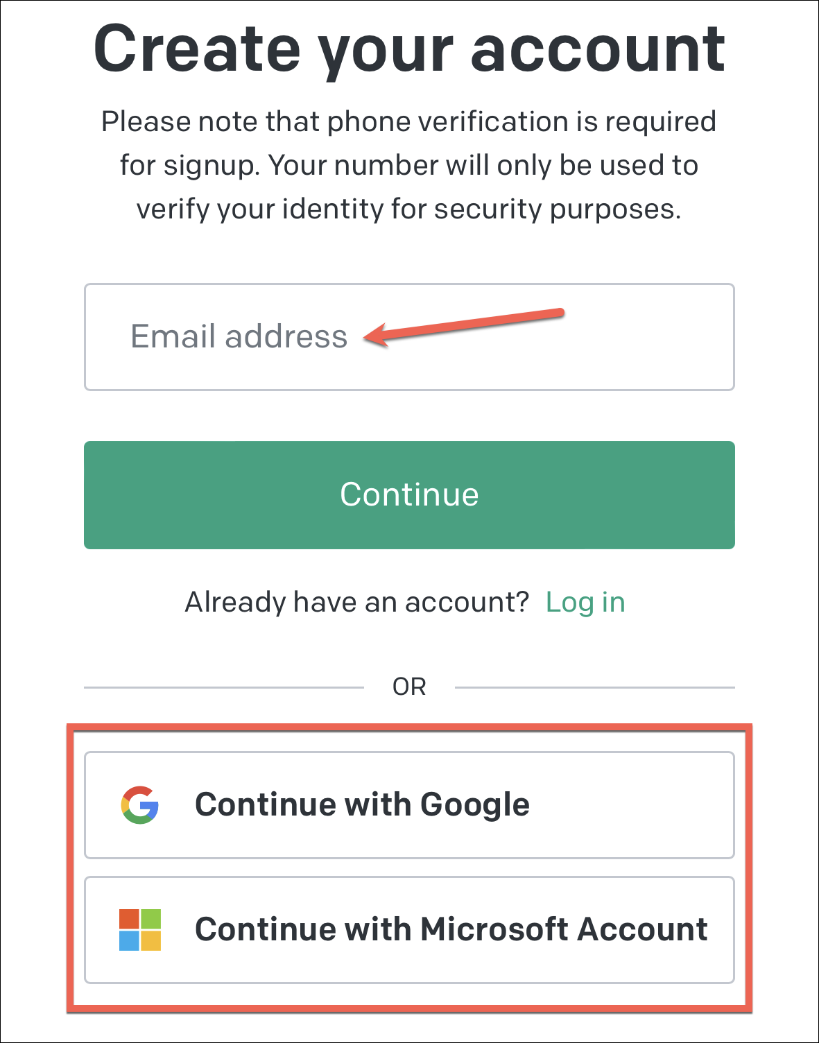 If you tapped Sign Up, then create a new account by entering your email address and creating a password. You can also create a new account faster by using your Google or Microsoft accounts.