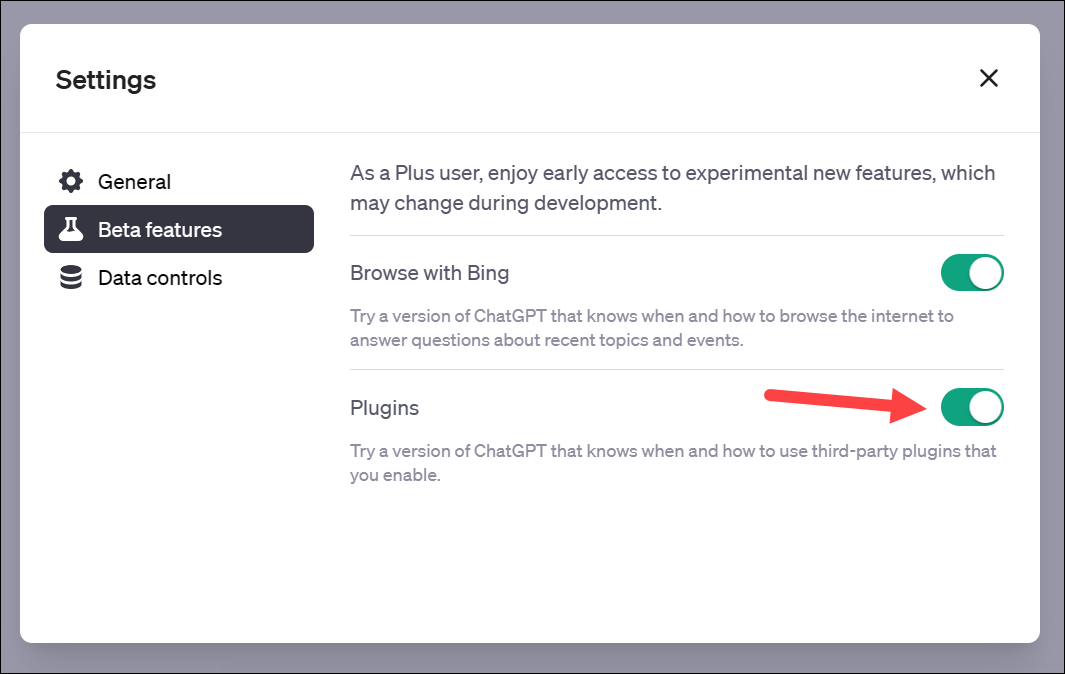 Before you can start using Plugins for ChatGPT, you'll need to enable them for your account. Since they're still in Beta, they aren't enabled by default. The Plugin model is separate from the Web Browsing model and contains all third-party Plugins ChatGPT has to offer. The model not only knows how to use the Plugins but also when to use them and when not to.
