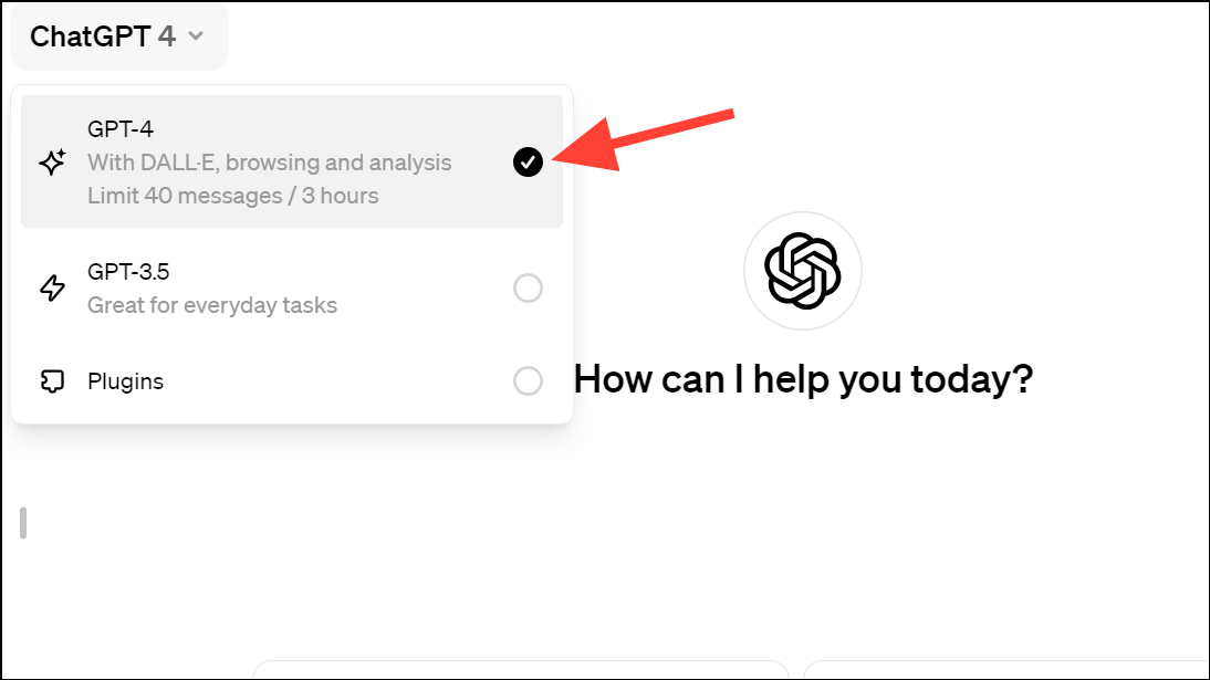 - Then, start a new chat with ChatGPT and make sure you switch to the GPT-4 model if you're not already on it. You don't have to select the DALL-E 3 model separately anymore.