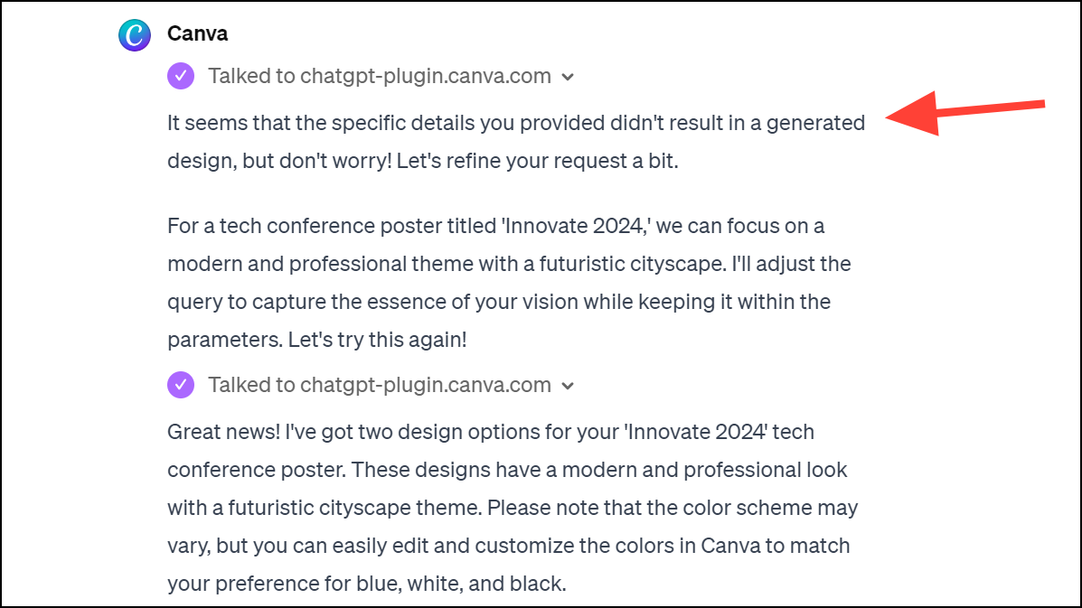 The GPT for Canva is a lot different than the Canva Plugin that you can use with the Plugins model in ChatGPT. While the Canva Plugin can only help you discover templates from Canva that match your request, the Canva GPT can create designs based on your request.
