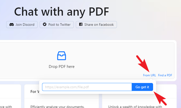 If you have a link to the PDF, click on the 'From URL' option and then enter the link to the PDF file. Make sure the PDF file is in public access, otherwise, it won't be able to upload the file to its servers for processing it. Click on 'Go get it' after entering the URL.