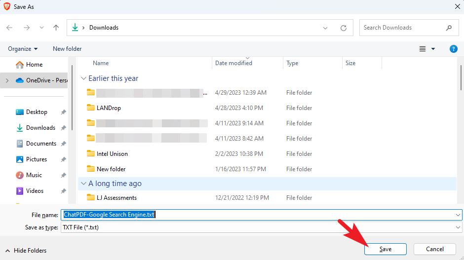 Navigate to your preferred downloads directory, and click on 'Save' to download it. The file will be exported in a .TXT file format.