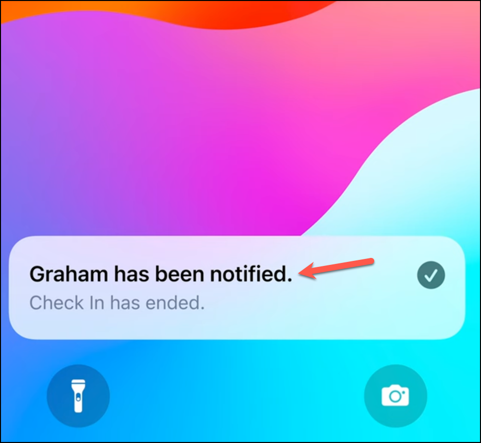 Your contact will receive a notification immediately. Once you arrive at your destination or the set time expires, the 'Check In' will automatically update your contact without any further action needed from you.