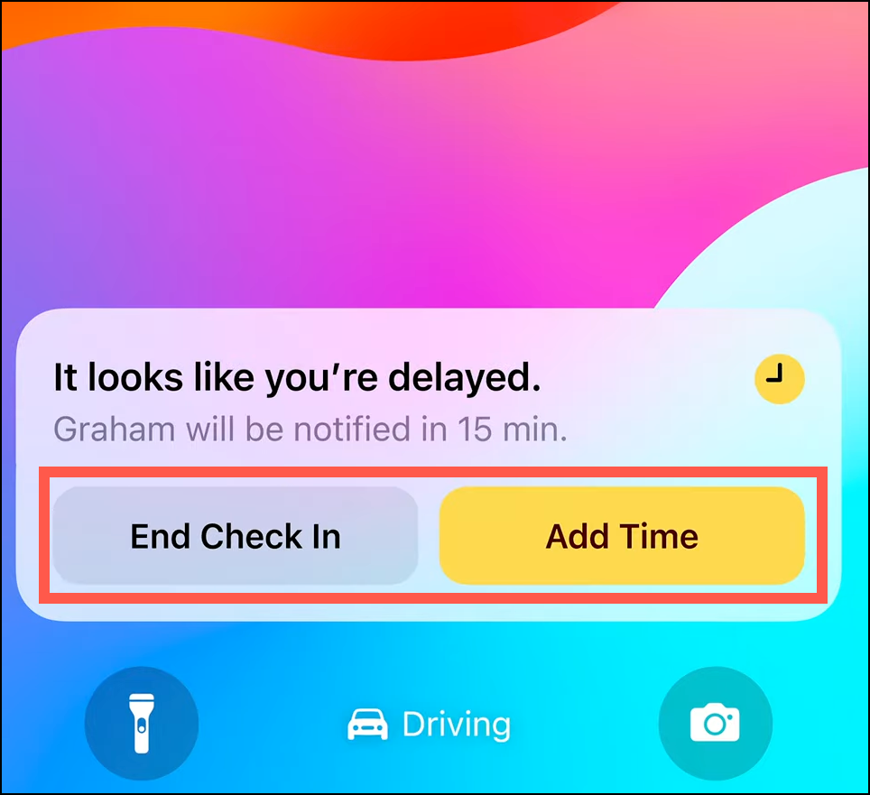 If during your journey, the app detects that you're not moving toward your destination as expected, you'll receive a prompt on your screen. You have the option to 'End Check In' if you've arrived safely or 'Add Time' if you're delayed but not in any trouble.
