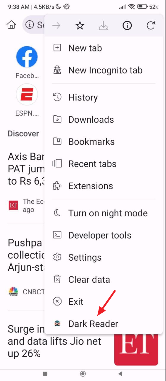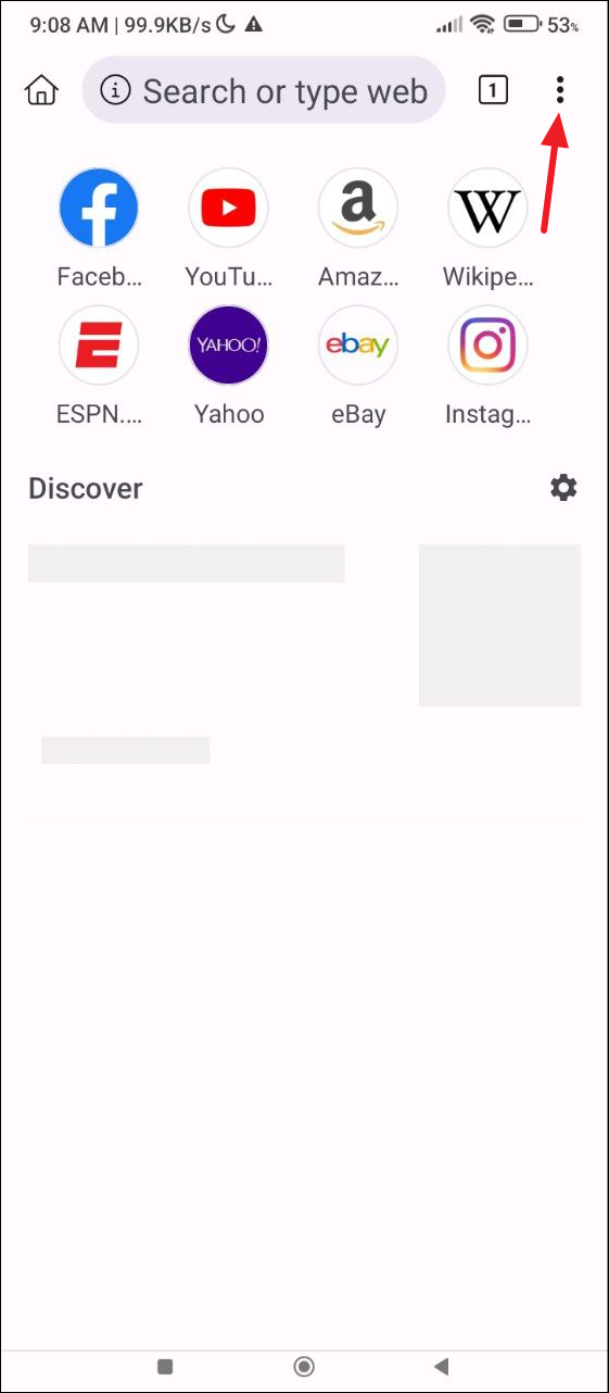 - Once the browser is installed, open it and tap on the three dots at the top right.