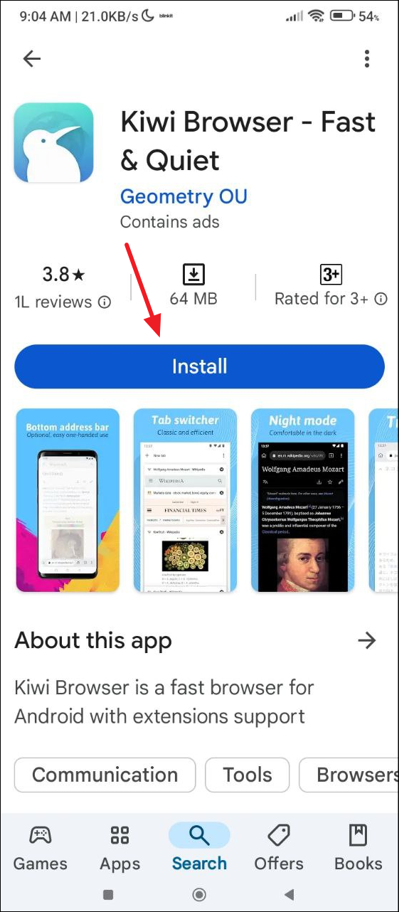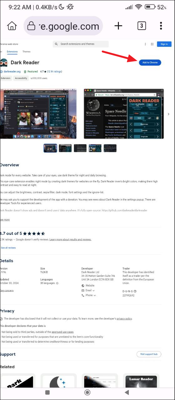- Search for the extension you want to install in the Kiwi browser and then tap on the 'Add to Chrome' button.