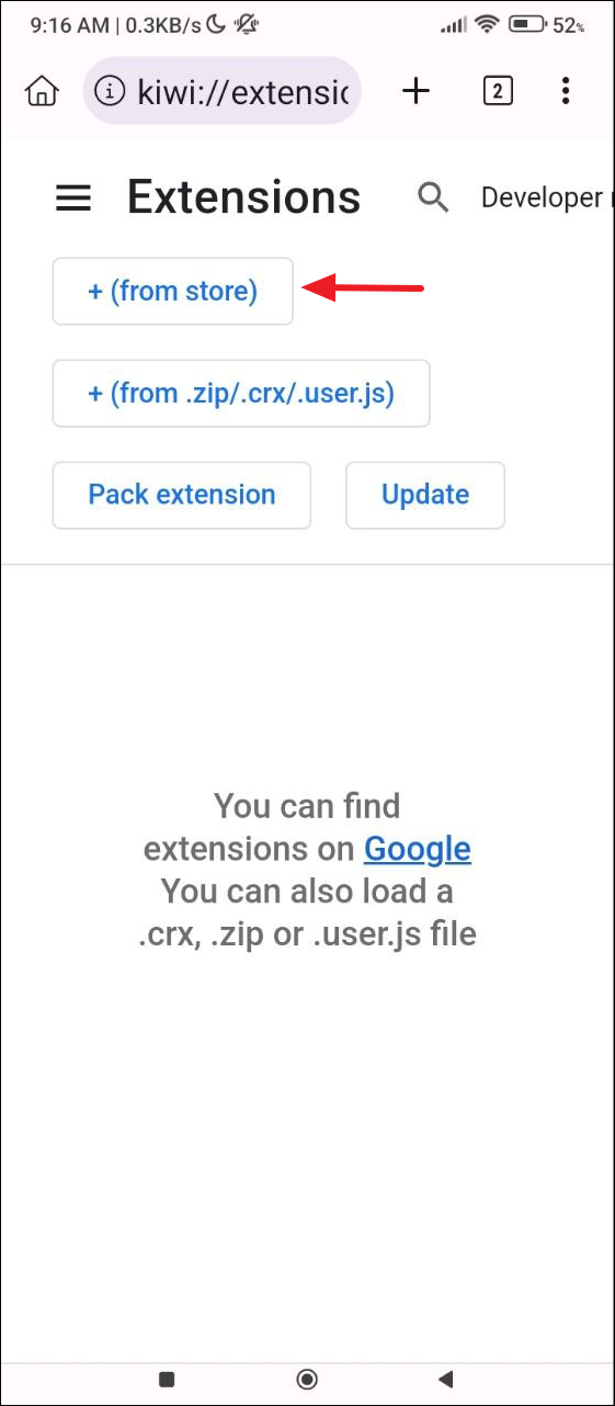 - Then tap on the '+ from Store' button to open the Chrome Web Store.
