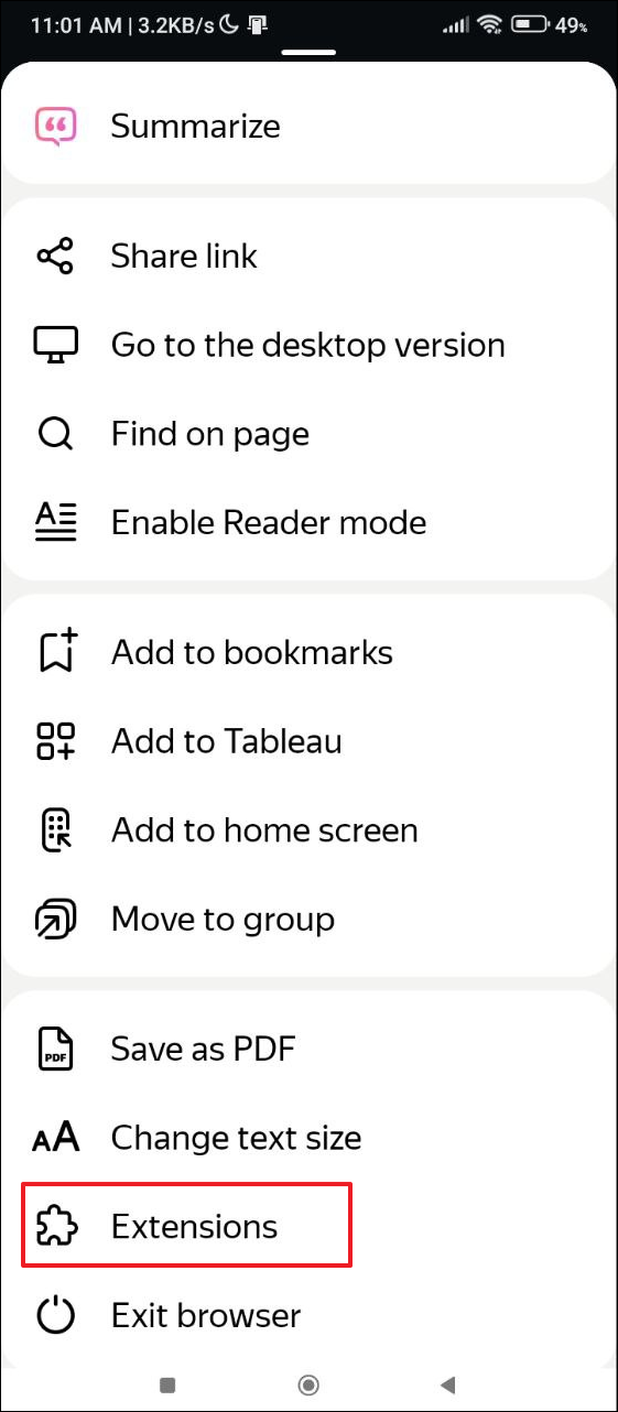 Yandex browser is another Chromium-based browser that supports Chrome extensions on Android.
