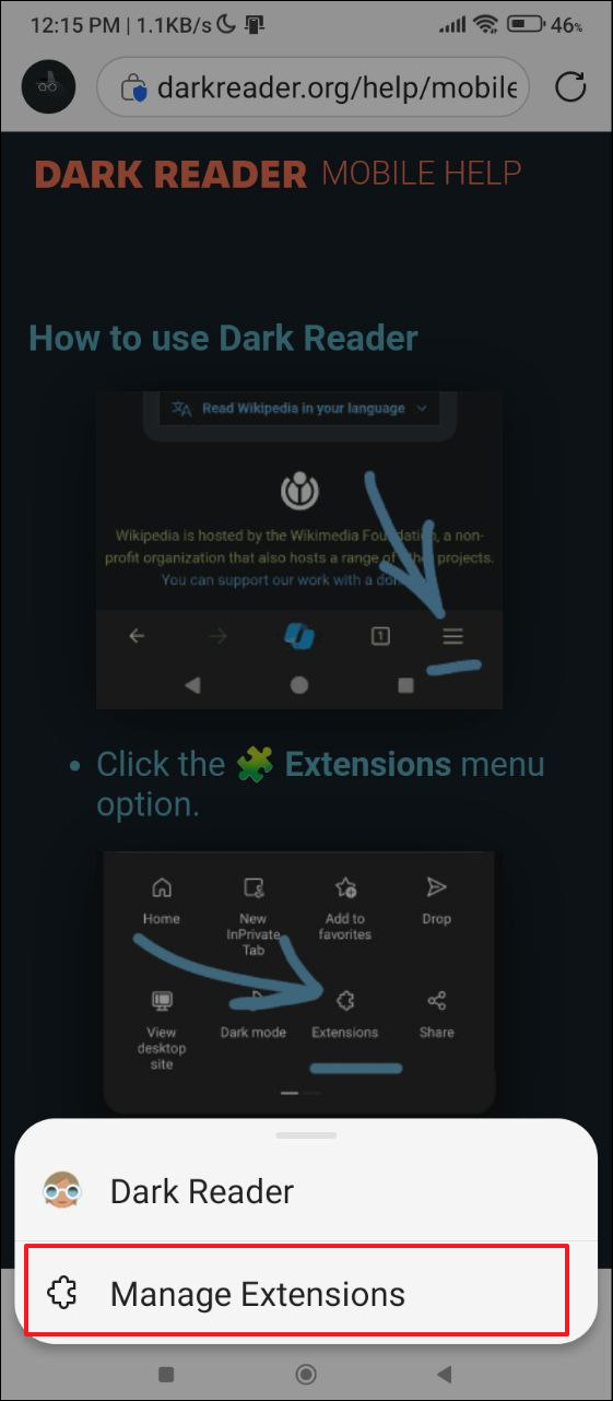 - You can also tap 'Manage extensions' to view more options to manage your extensions.