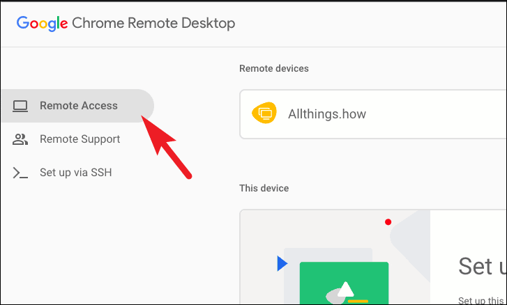 - Once logged in, click on the Download button under Set up remote access. This will open the Chrome Web Store in a new tab.