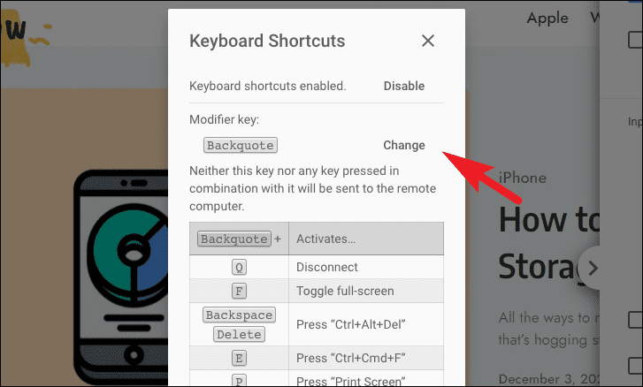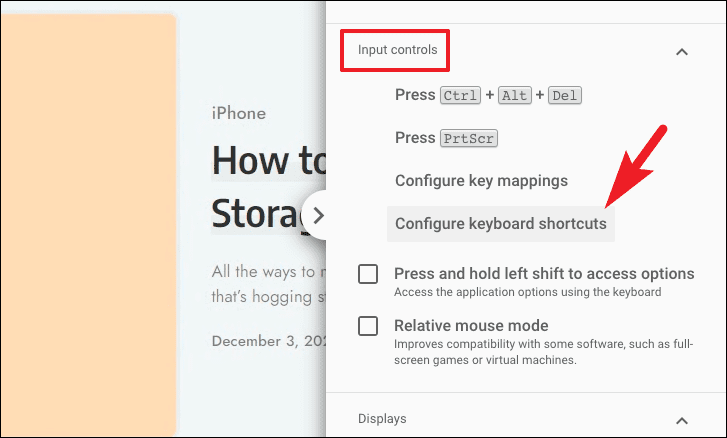 - To configure keyboard shortcuts, scroll to the Input controls section and click Configure keyboard shortcuts. Set your preferred modifier key and enable or disable specific shortcuts.