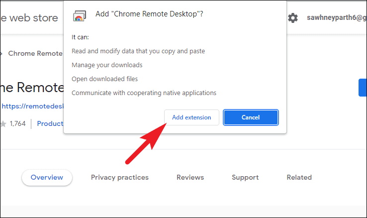 - In the Chrome Web Store, click Add to Chrome to install the Chrome Remote Desktop extension. A confirmation prompt will appear.