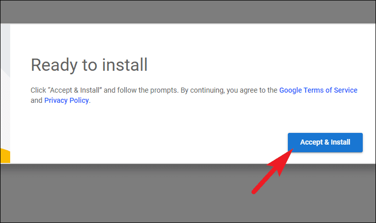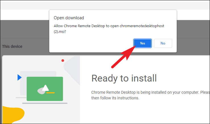 - Return to the Chrome Remote Desktop webpage and click Accept & Install to download the setup file. A system prompt may appear asking for permission.