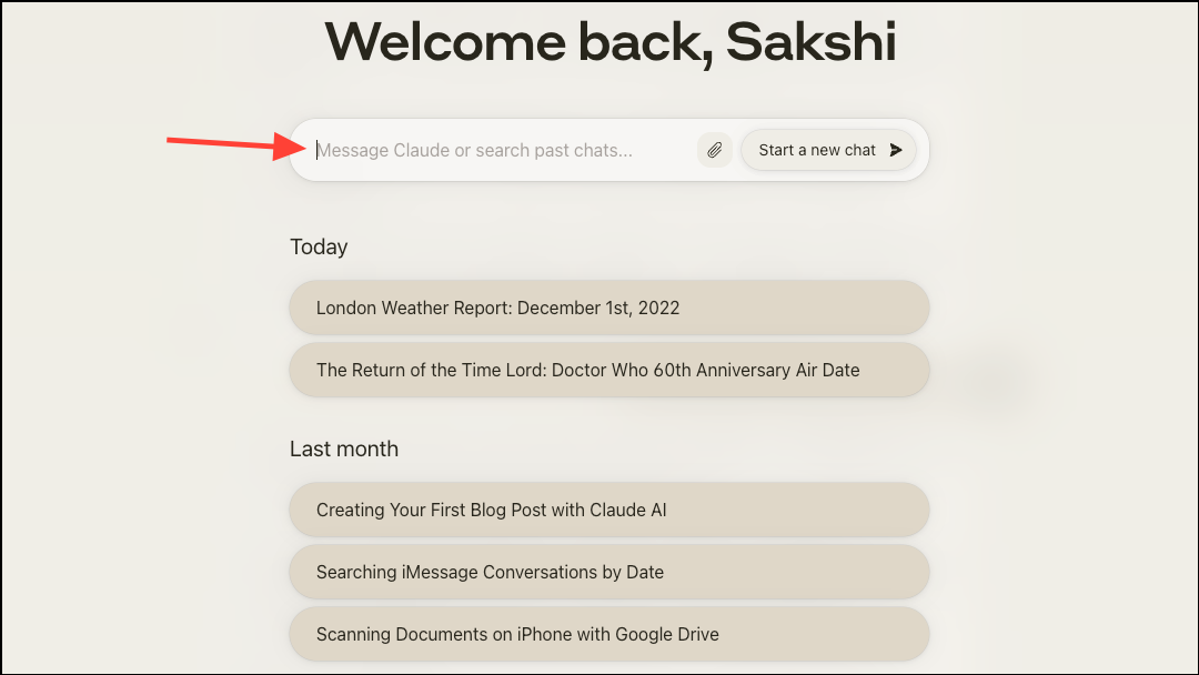 - You can also use the text field to start a new chat or search for any old chat.