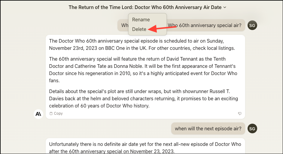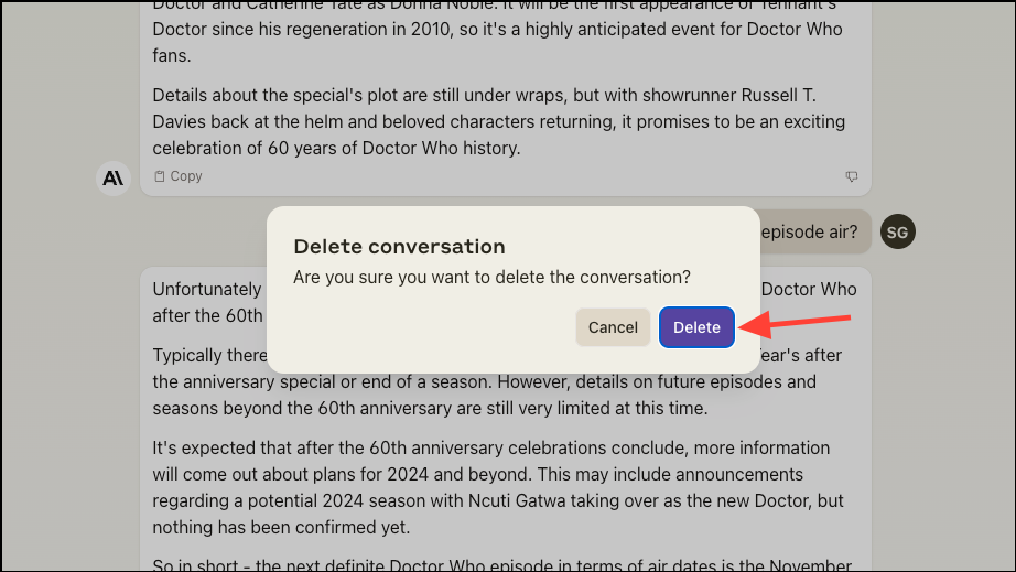 - You can also delete a chat by clicking on 'Delete' from the chat options.