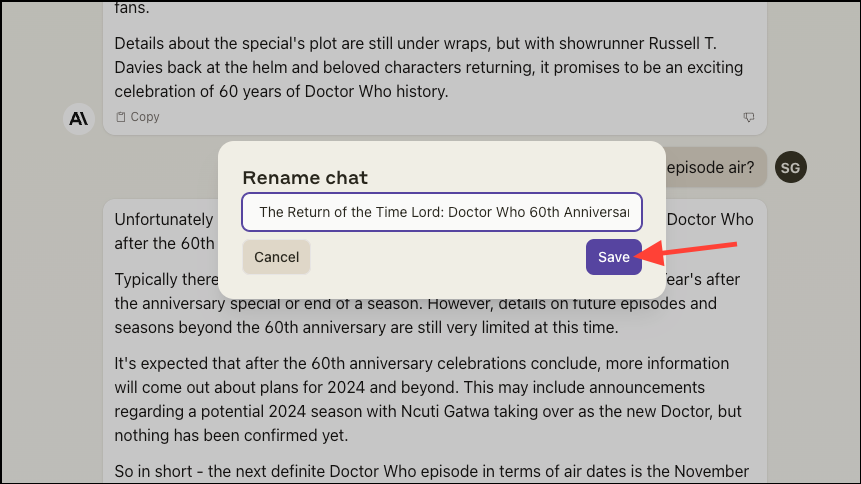 - Then, enter the new name for the chat and click on 'Save'.