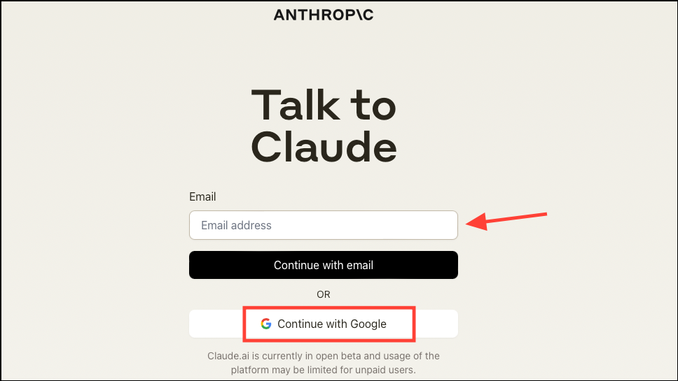 - Then, create an account using either your email address or your Google account.