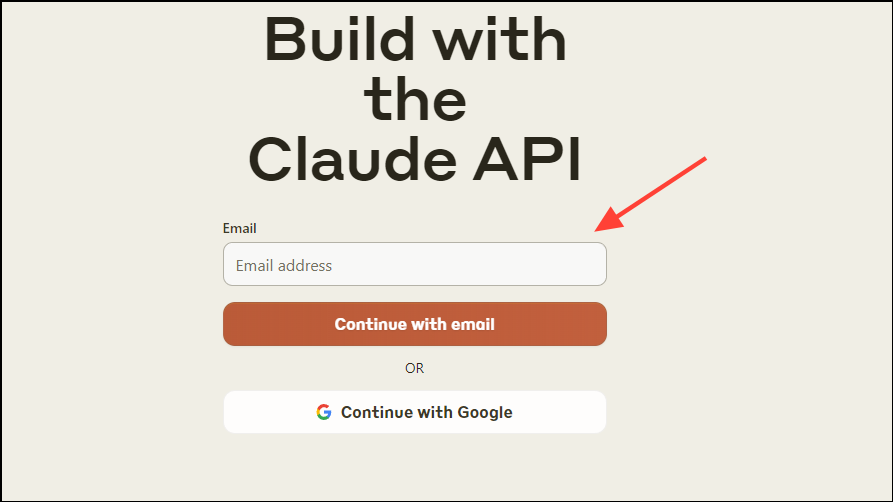 Step 1: Visit Anthropic's website through this link and sign up using your email address or log in with your Google account.