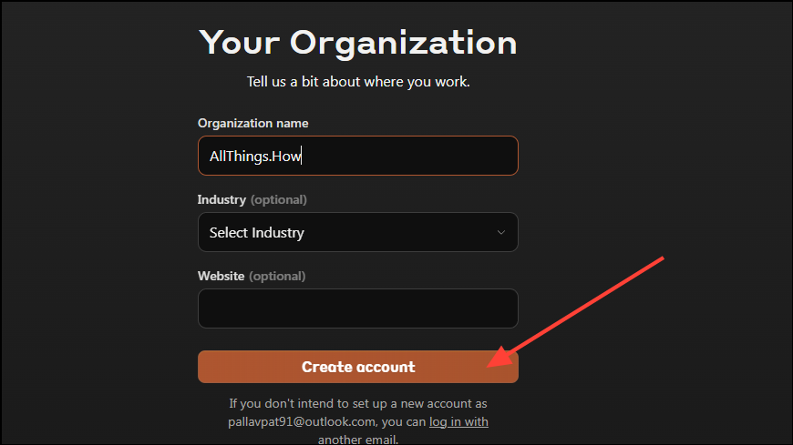 Step 3: You'll be prompted to furnish details about your organization. Fill in the information and click 'Create Account'.
