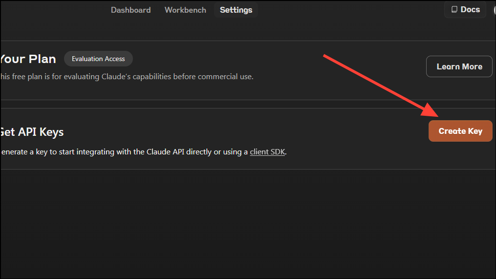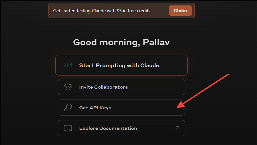 Step 4: Although you can start using Claude AI immediately, to integrate it with Google Sheets, click on the 'Get API Keys' button on your dashboard.