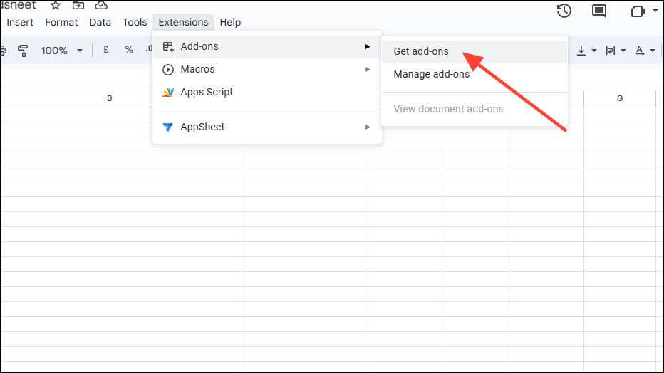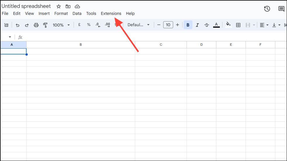 Step 1: Open Google Sheets and click on the 'Extensions' menu at the top.