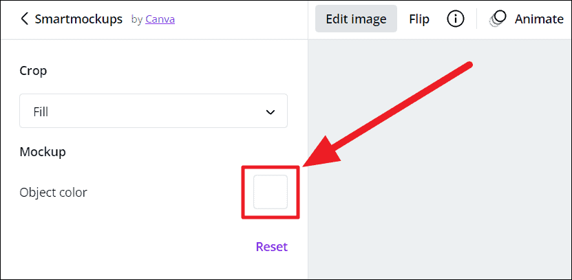 While using Smart Mockups. To match the mockup’s color to your design, click the customize icon (controls) at the center of the chosen mockup product.