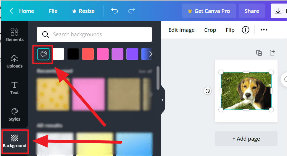 While matching the background. Open the image/design and click the ‘Background’ option in the list of the designing options on the left.