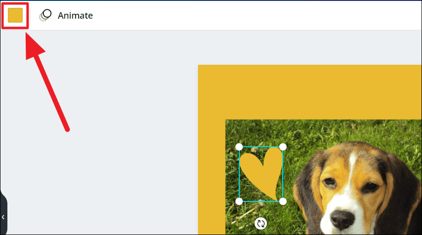 While changing element colors. Almost all elements including solid shapes, graphics, lines, etc., would generally have their own default colors which you can further customize. Choose your element, select it, and then click the color block at the top. This will open the color customizing options.