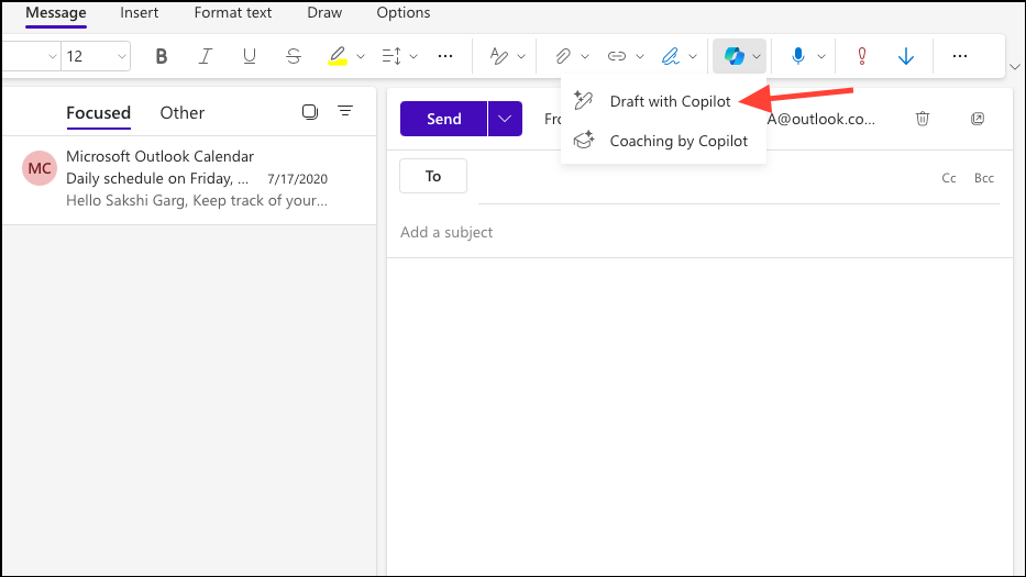 - From the options that appear, select 'Draft with Copilot'.
