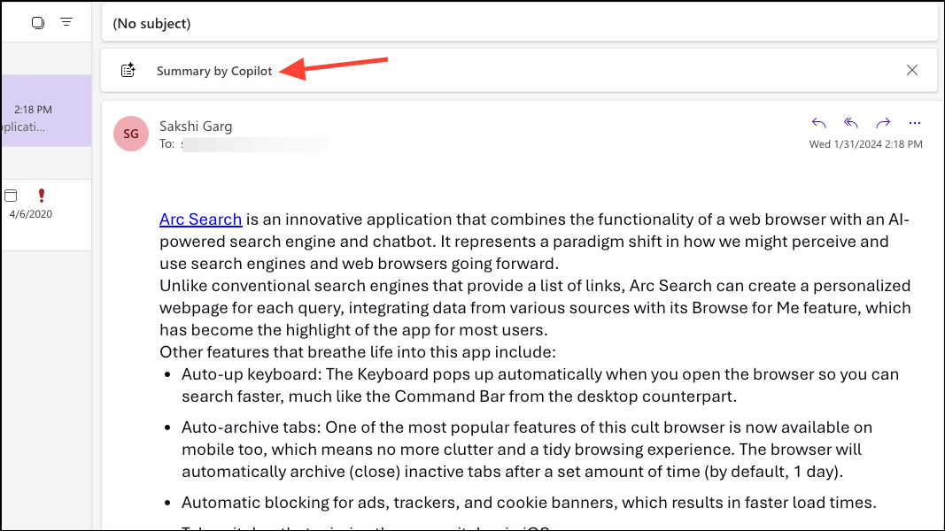 If you have a lot of emails to catch up on, Copilot can be your best ally. It can quickly generate summaries and key points for emails and email threads, so you don't have to go through each mail in the conversation individually.