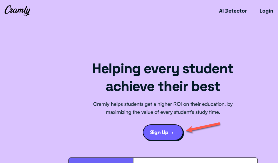 To use Cramly AI, you'll need to create an account. Go to cramly.ai and click the 'Sign Up' button.