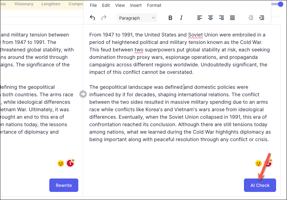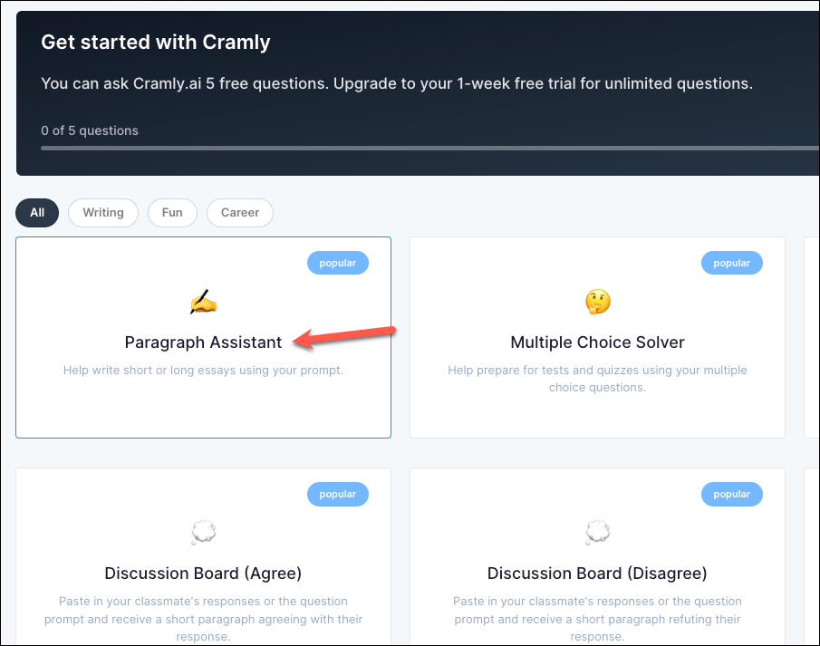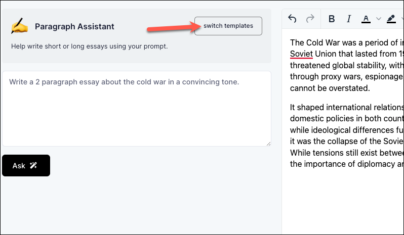 The Paragraph Assistant is a powerful tool to help you generate unique paragraphs on any topic. So, if you only need a little help, you can turn to this feature instead of asking the AI to create entire assignments for you.