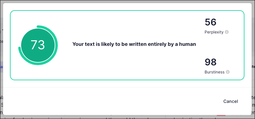 You can also check the output with the AI detector to ensure the text produced doesn't flag off any other AI detection tools.