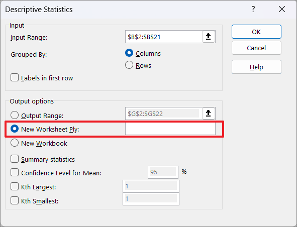 New Worksheet Ply: If you want to show the results in a new spreadsheet, simply select the ‘New Worksheet Ply’ radio button.