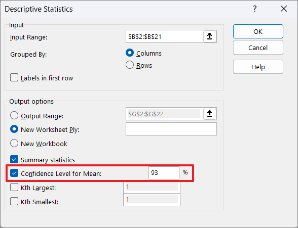 - Confidence Level (95.0%) – Confidence level indicates the range of values that may contain a population parameter or mean.