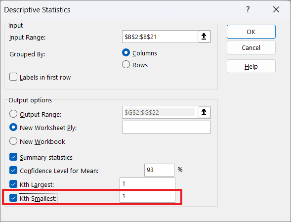 Kth Smallest: This option will display the Smallest value in the data set. The default value is 1 which means it will display the smallest value. If you enter ‘2’, it will display the second smallest value, 3 will show the third smallest value, and so on.