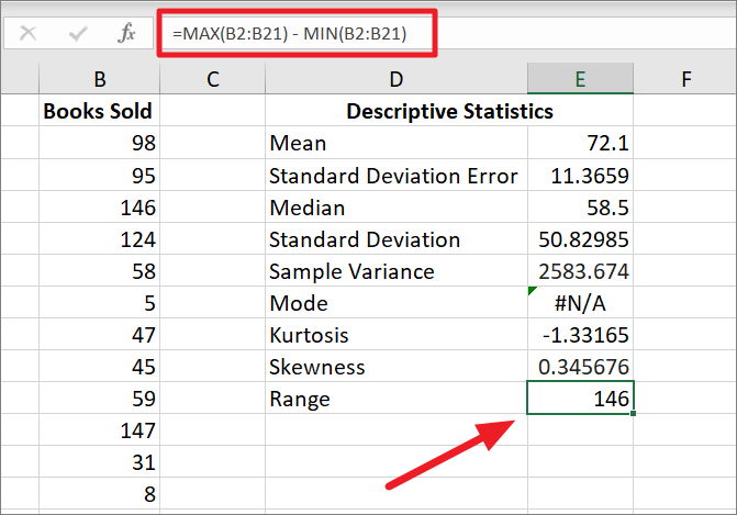Here’s a list of formulas to calculate descriptive statistics in Excel: