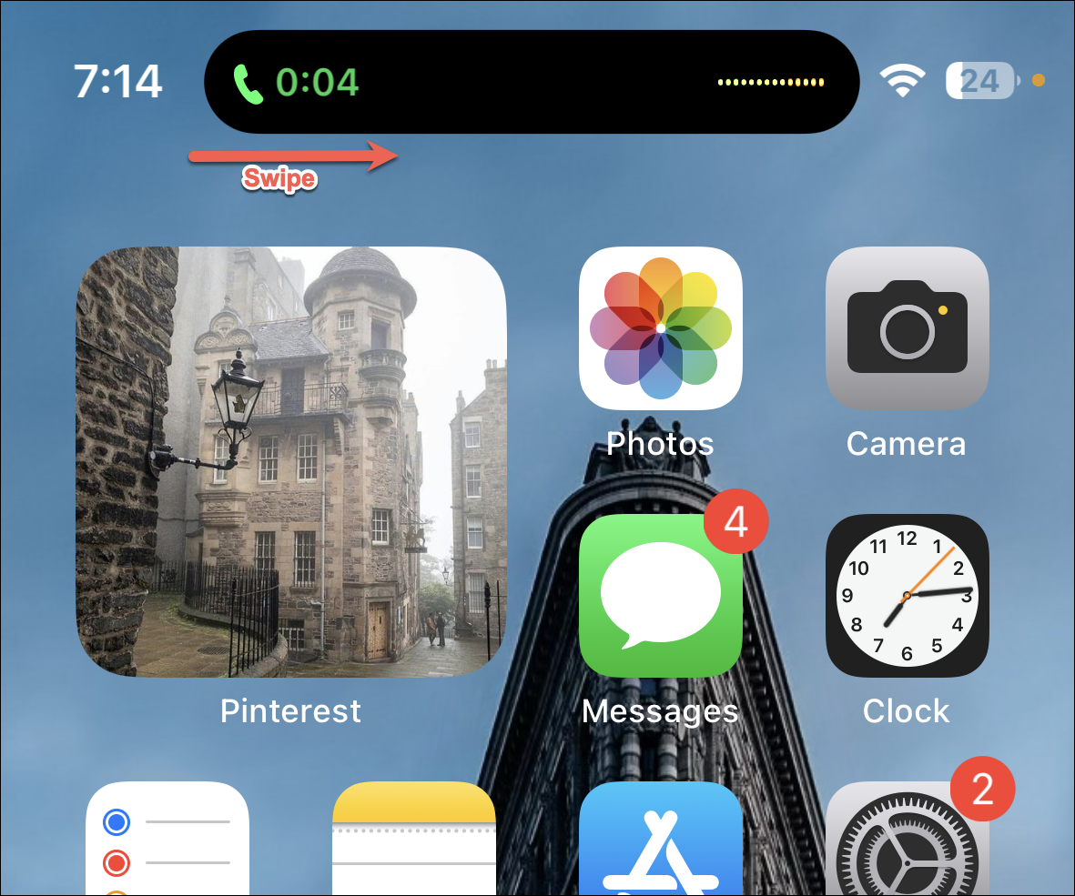 For some activities in the Dynamic Island, you can swipe to make them even more minimal. For instance, if you swipe on the Dynamic Island activity for an ongoing call, it’ll hide the call duration to show only the icon for the call in the Dynamic Island.