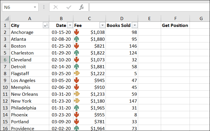Alternatively, you can use a cell reference for the lookup_value instead of typing the value directly. For example, the following formula uses the value in cell F2 to find its position in the range: