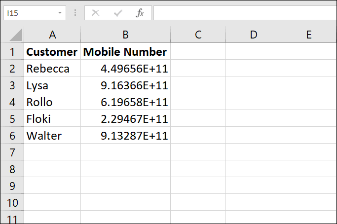 Consider mobile numbers that have been turned into scientific notation:
