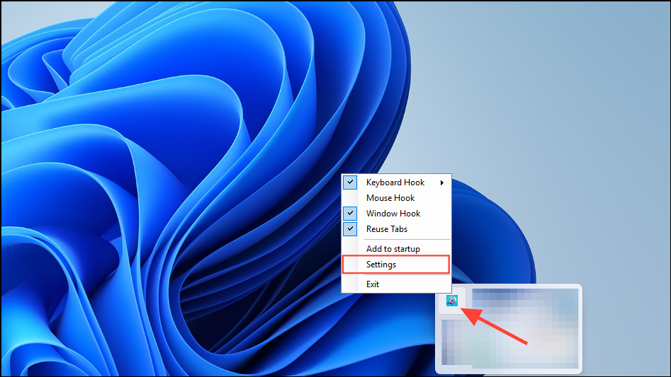 - Explorer Tabs Utility even lets you set up and customize hotkeys to launch a specific folder or switch to one that contains recently opened files. To do that, right-click on the program icon from the taskbar overflow and click on 'Settings'.
