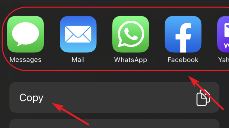 Next, either tap on your choice of app from the available options, or tap on the ‘Copy’ button to copy the link on clipboard and sharing it manually over any application of your choice.