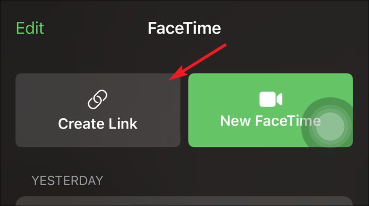 Next, tap on the ‘Create Link’ button to create a FaceTime link to enable your non-Apple buddies or loved ones to join in your FaceTime call.