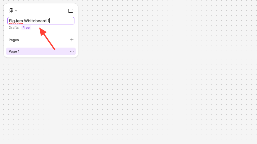 - You should now see a new FigJam whiteboard in front of you. Click on the white panel at the top left and give the file a new name.