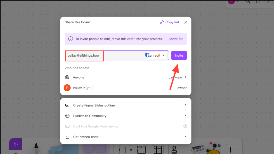 Step 2: Invite collaborators to your FigJam whiteboard