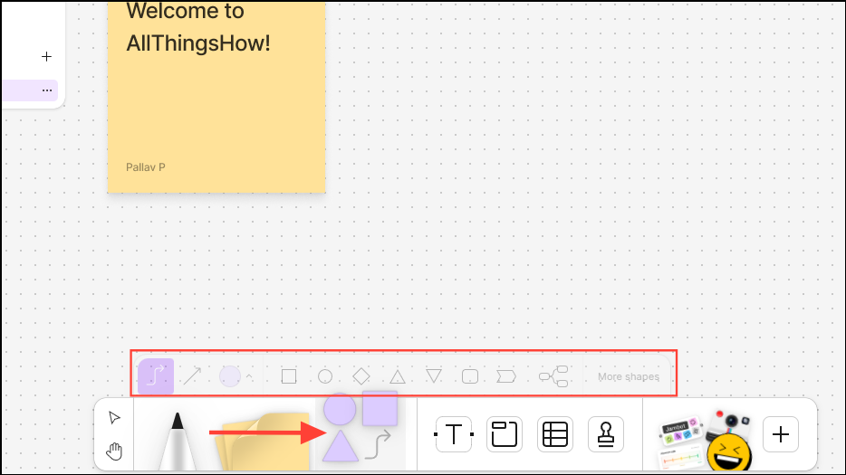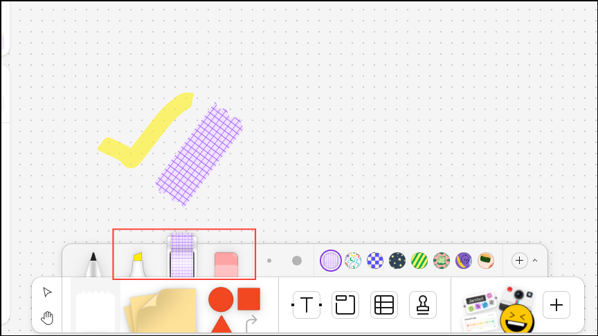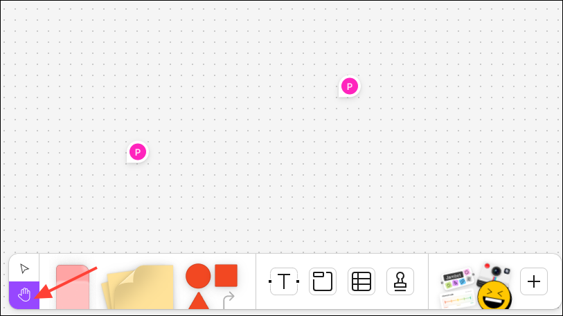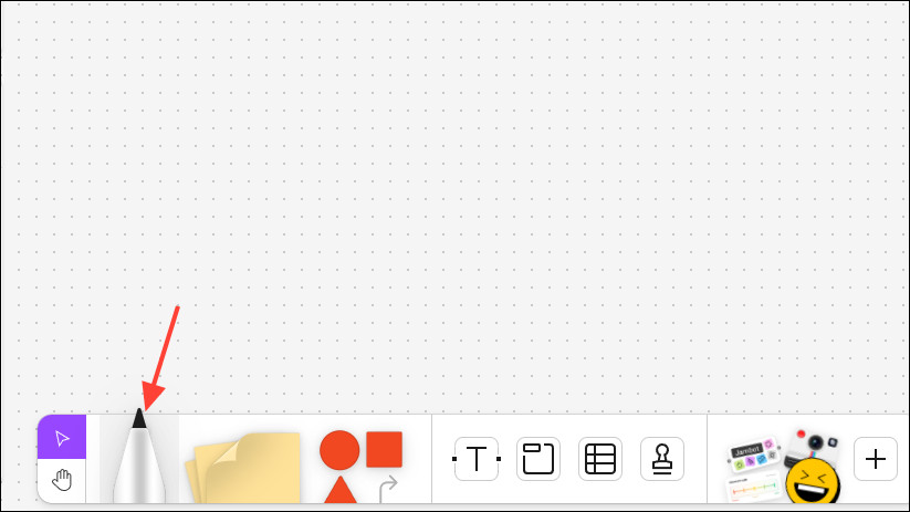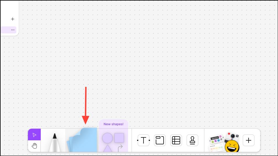You can add various visual elements like sticky notes, text, shapes, etc. to your whiteboard from the Tools panel at the bottom.