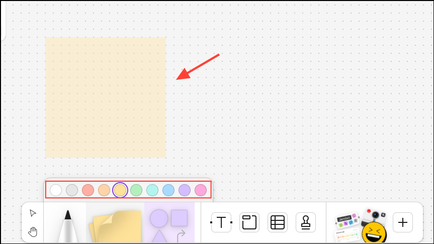 - Pick a color from the available options and click anywhere on the whiteboard to add your sticky note.
